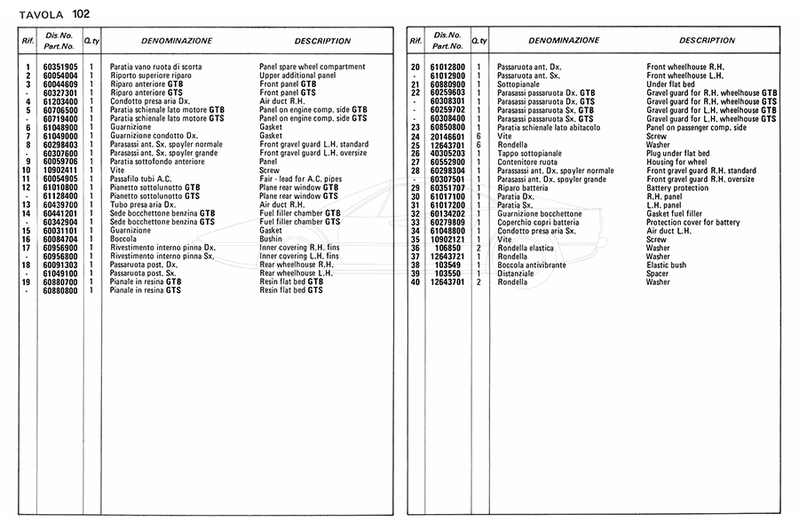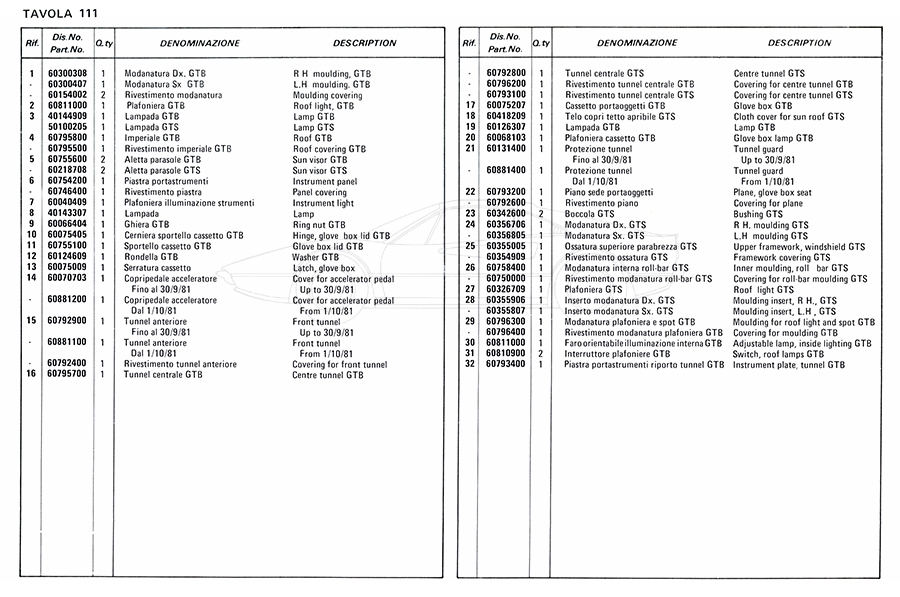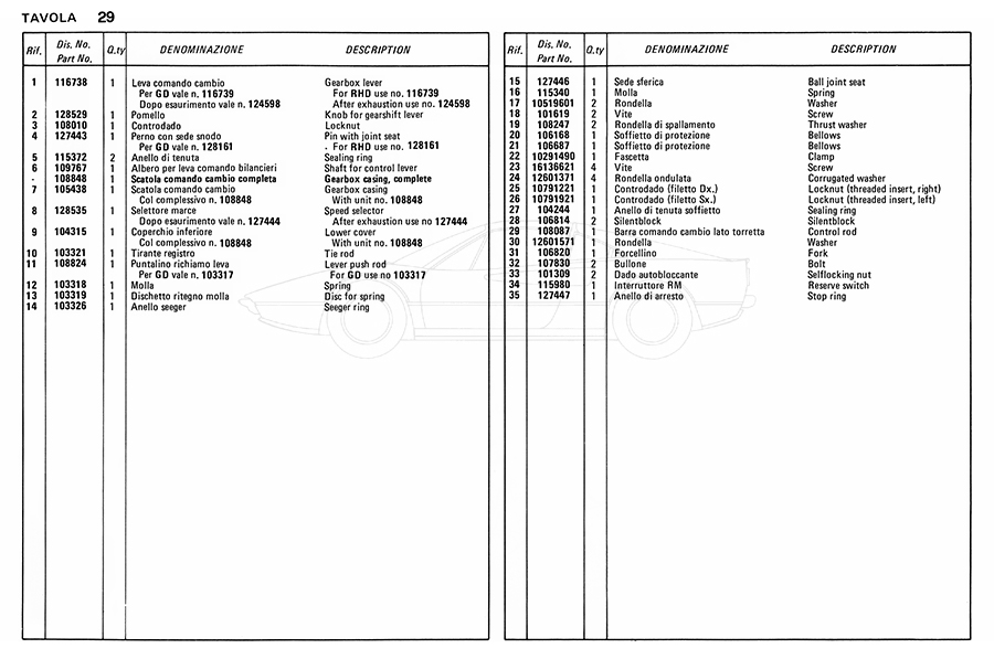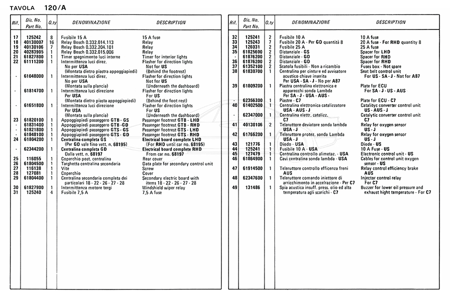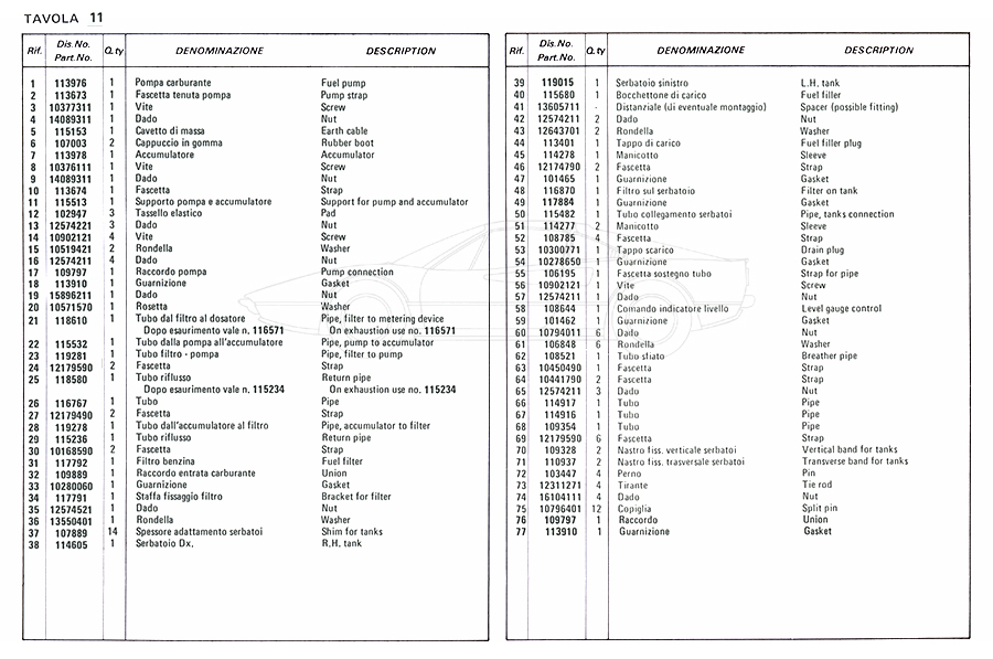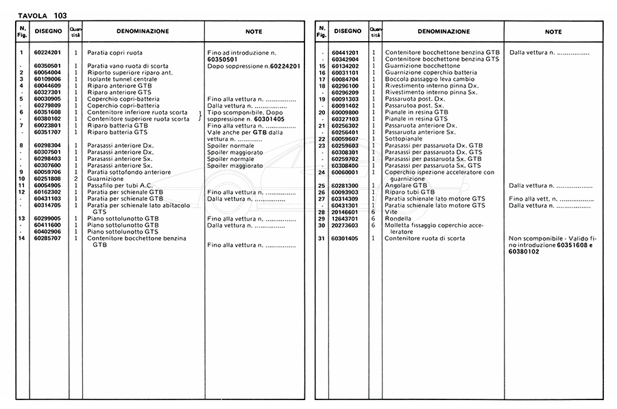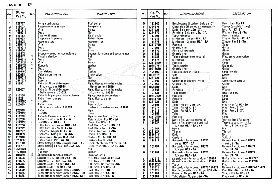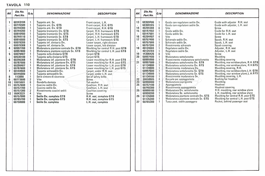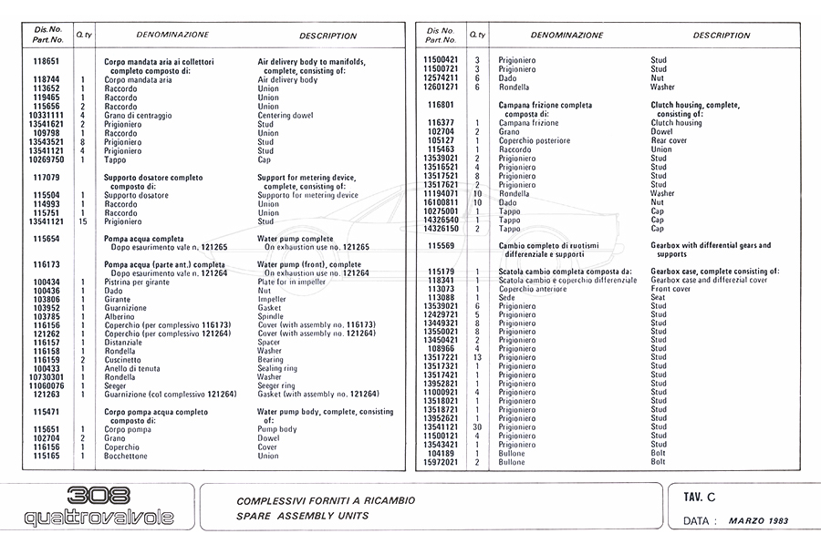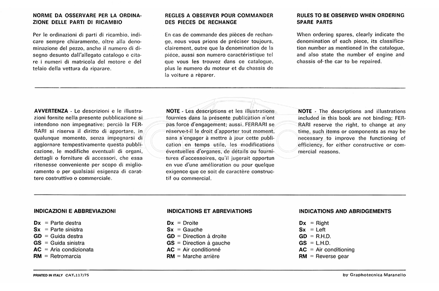 Catalogue des pièces de rechange