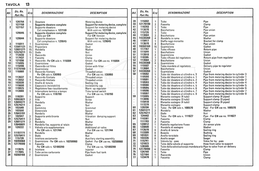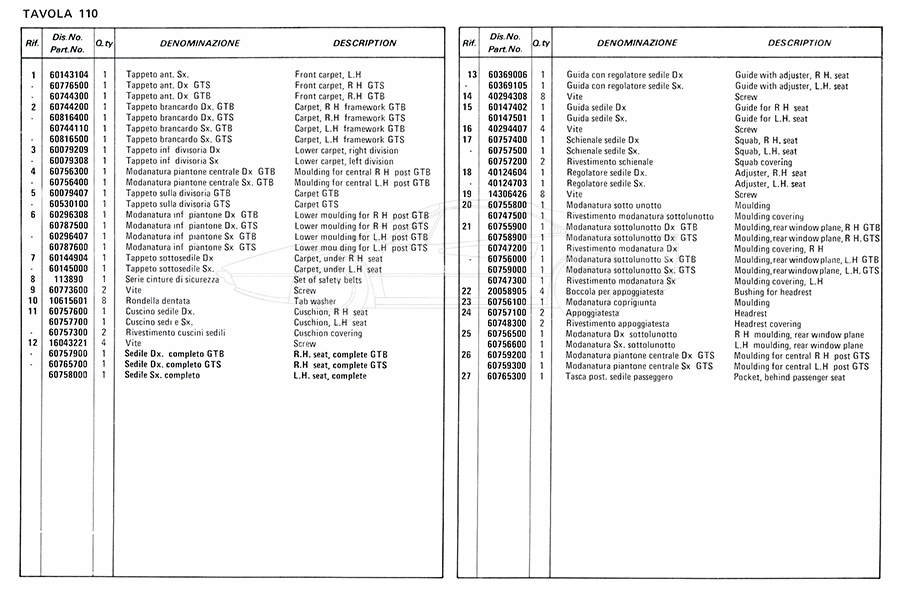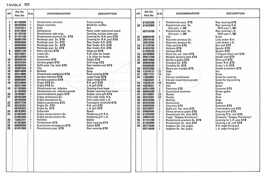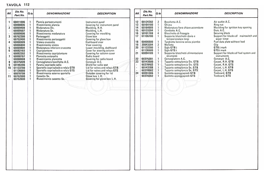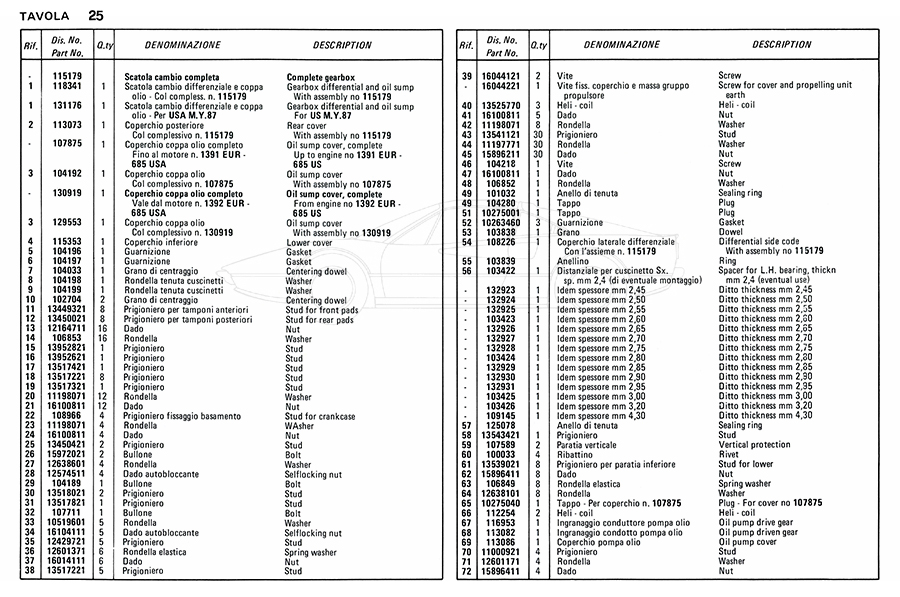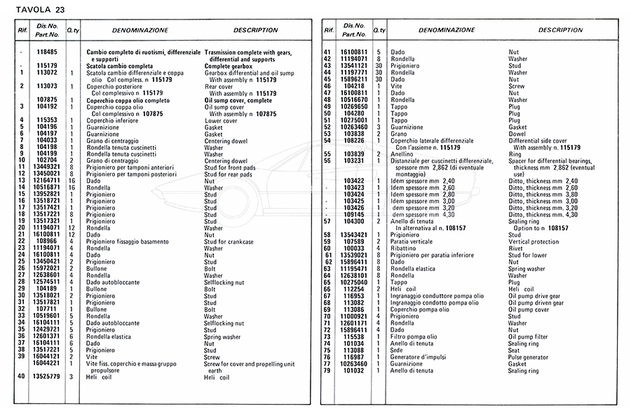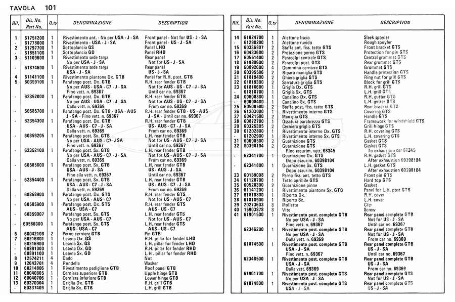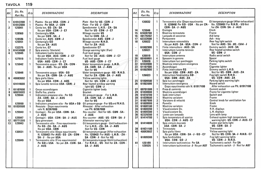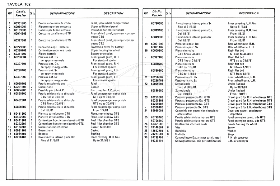 Catalogue des pièces de rechange