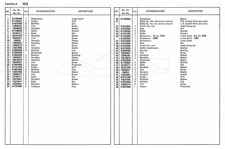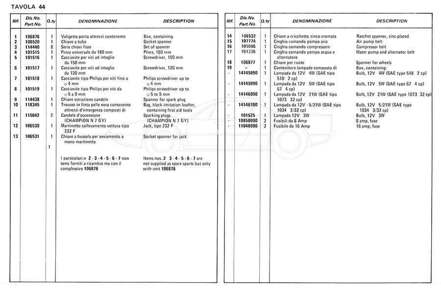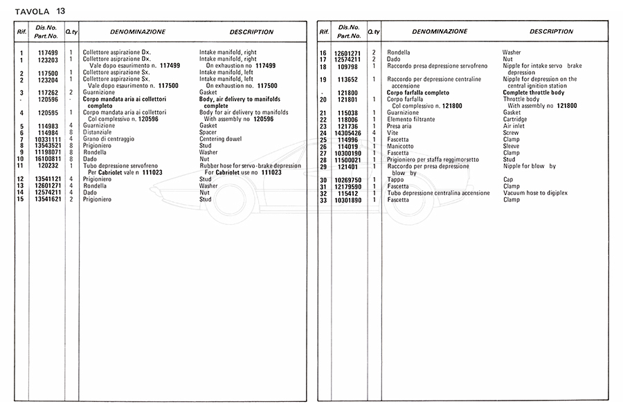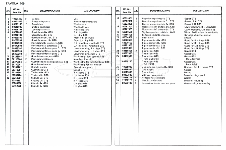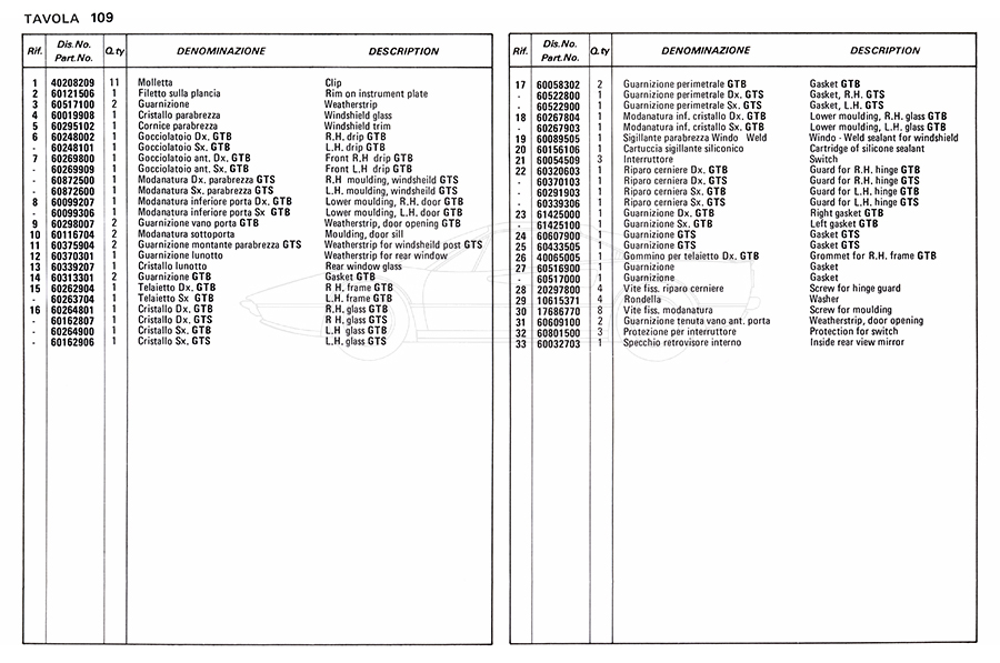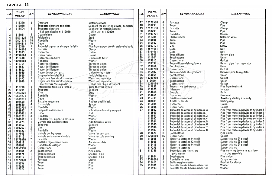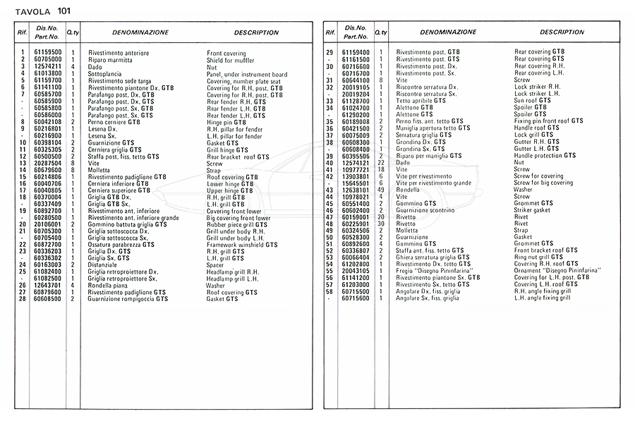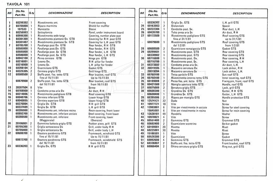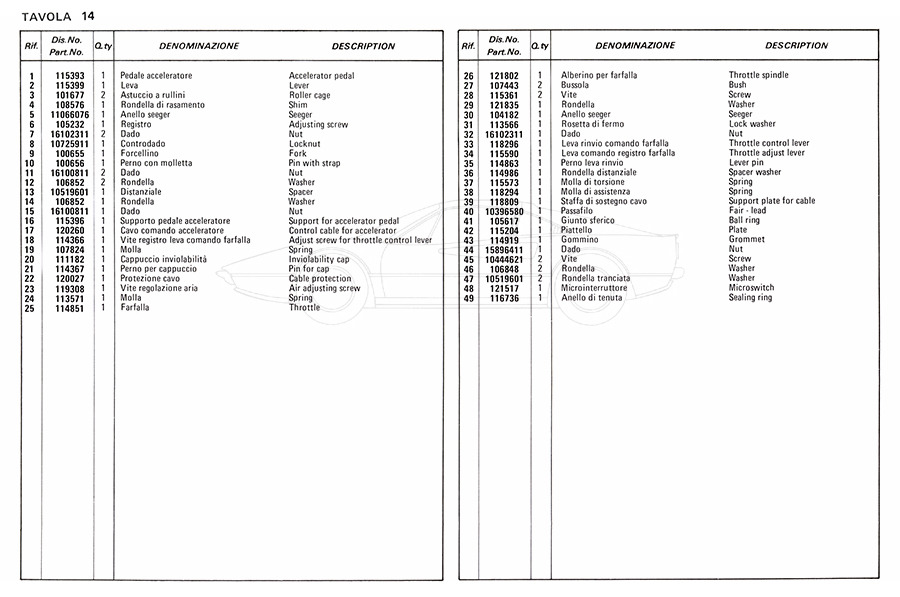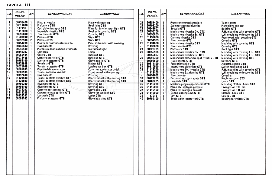 Catalogue des pièces de rechange