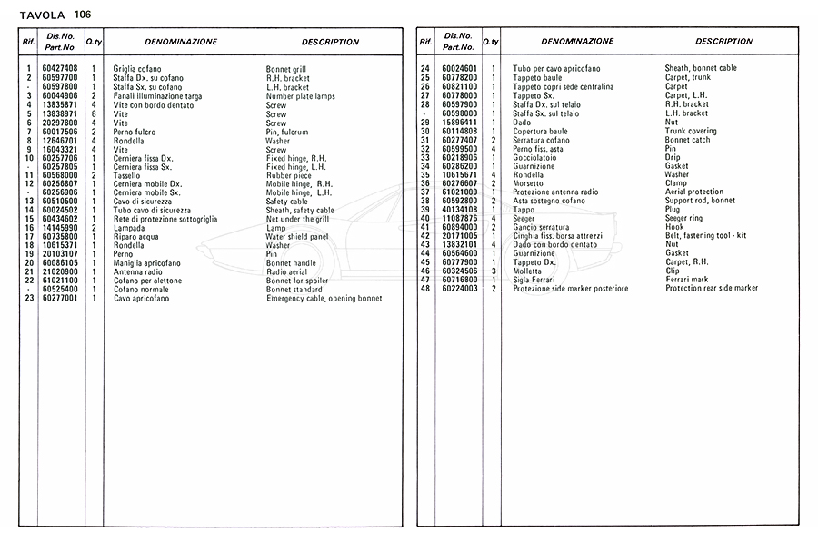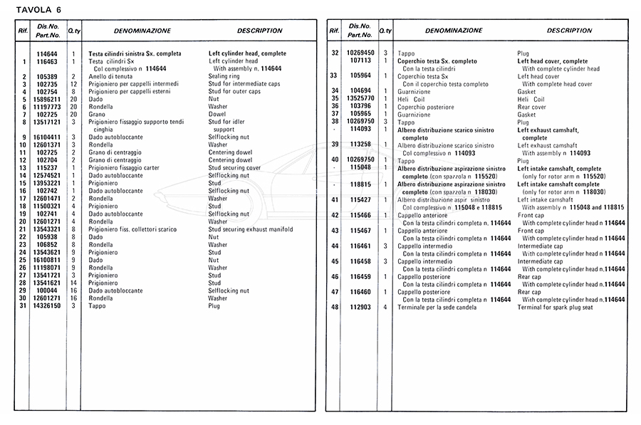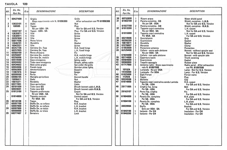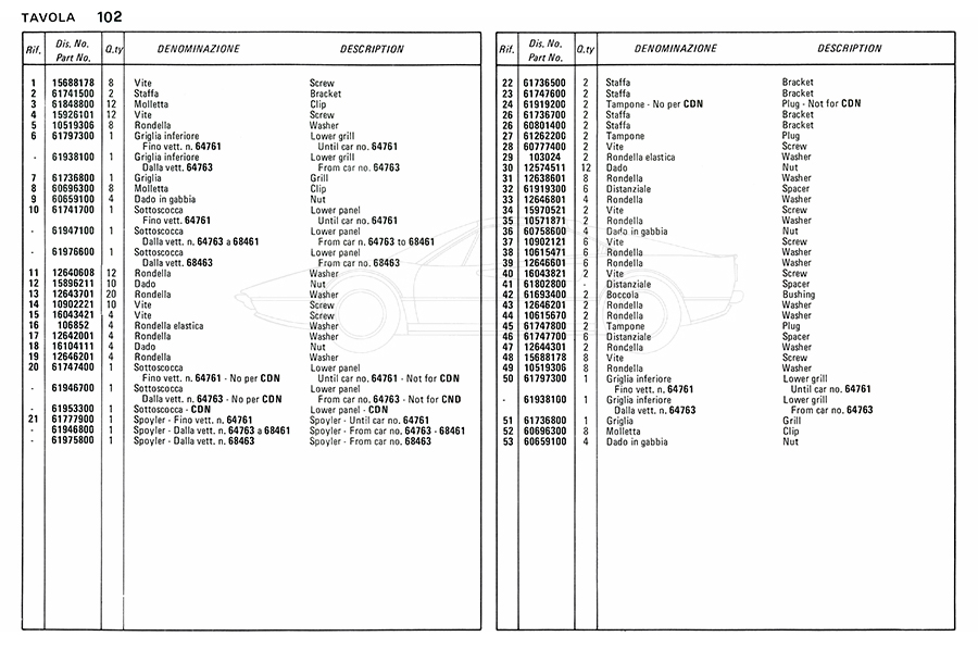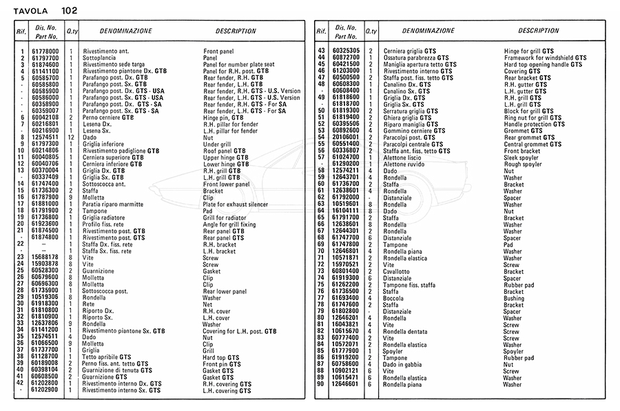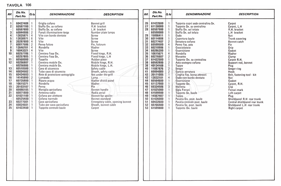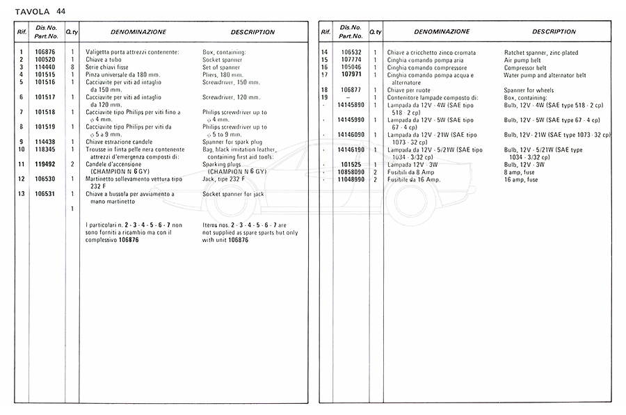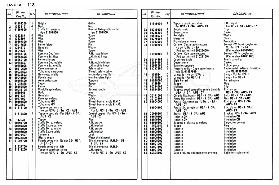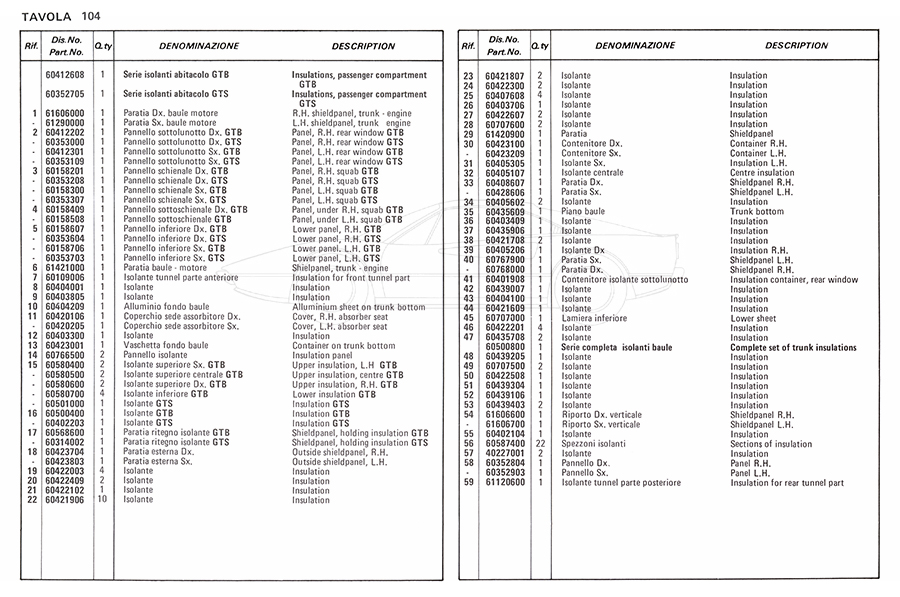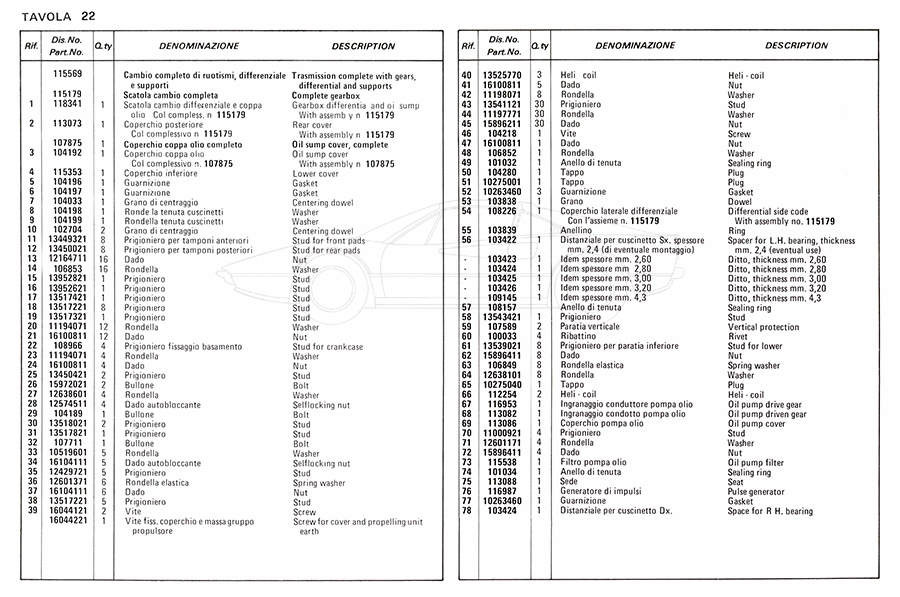 Catalogue des pièces de rechange