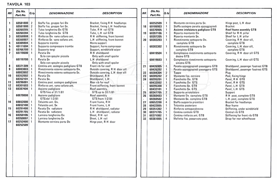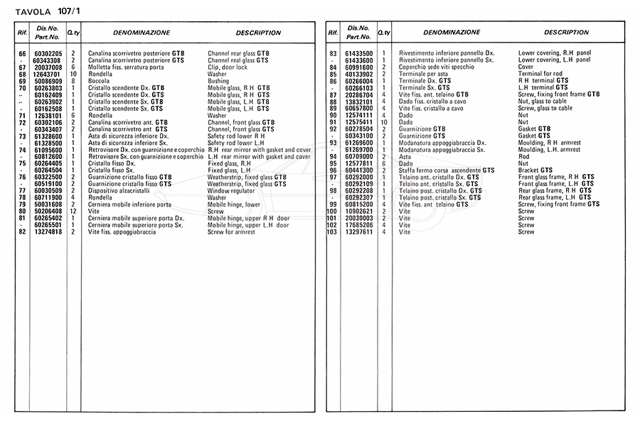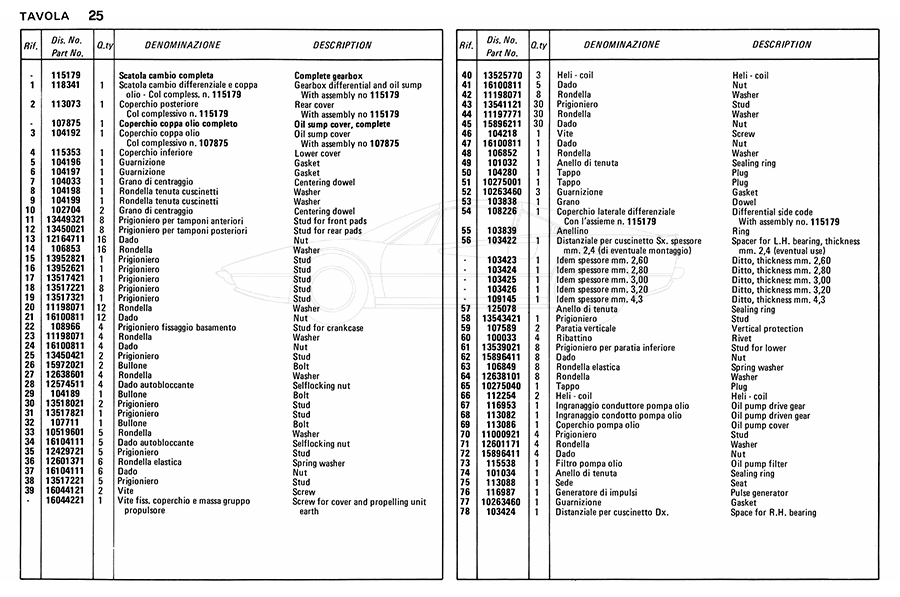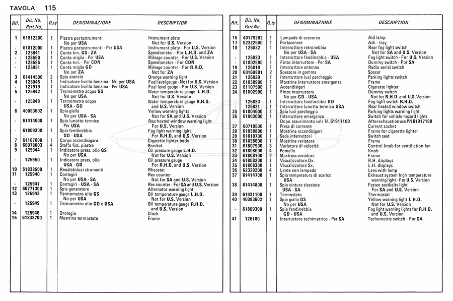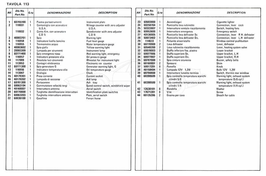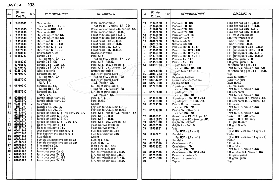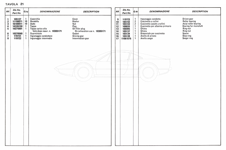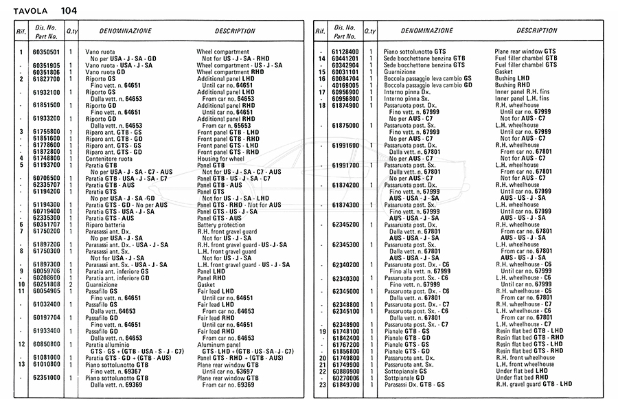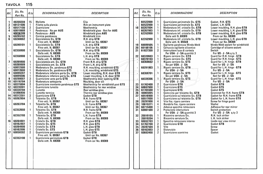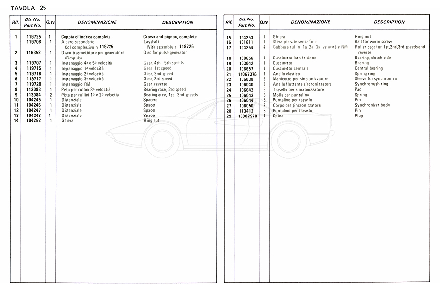 Catalogue des pièces de rechange