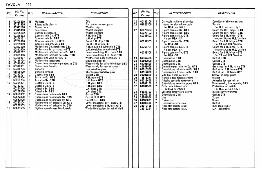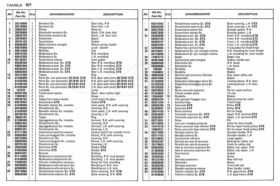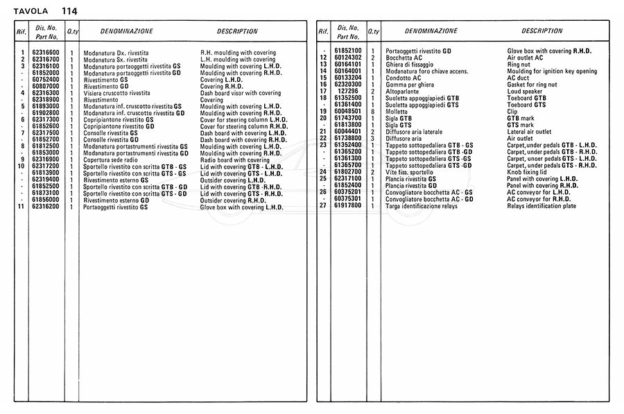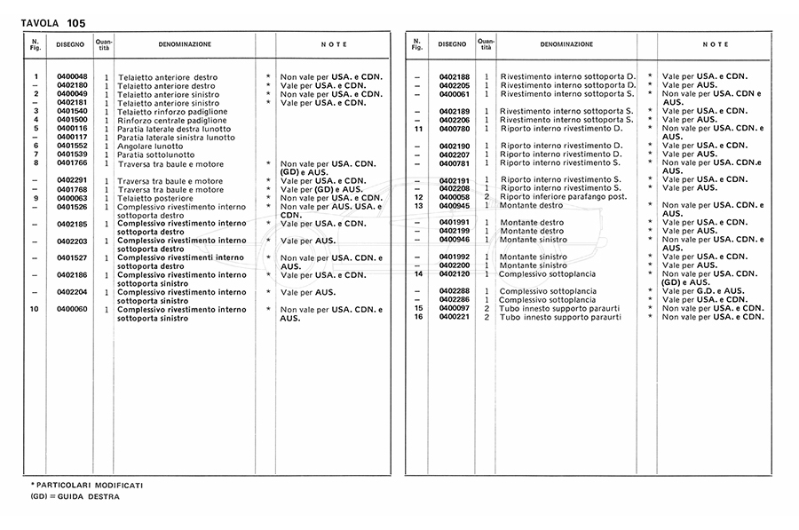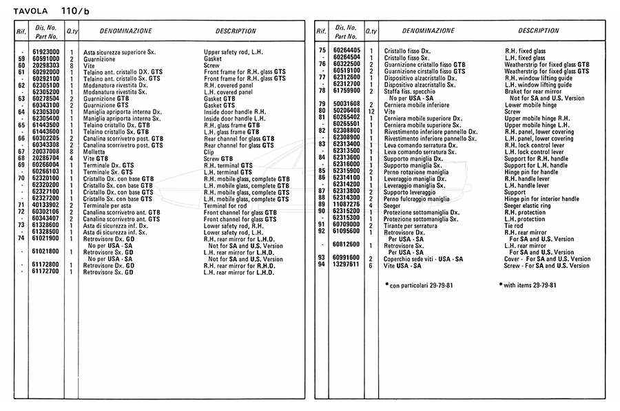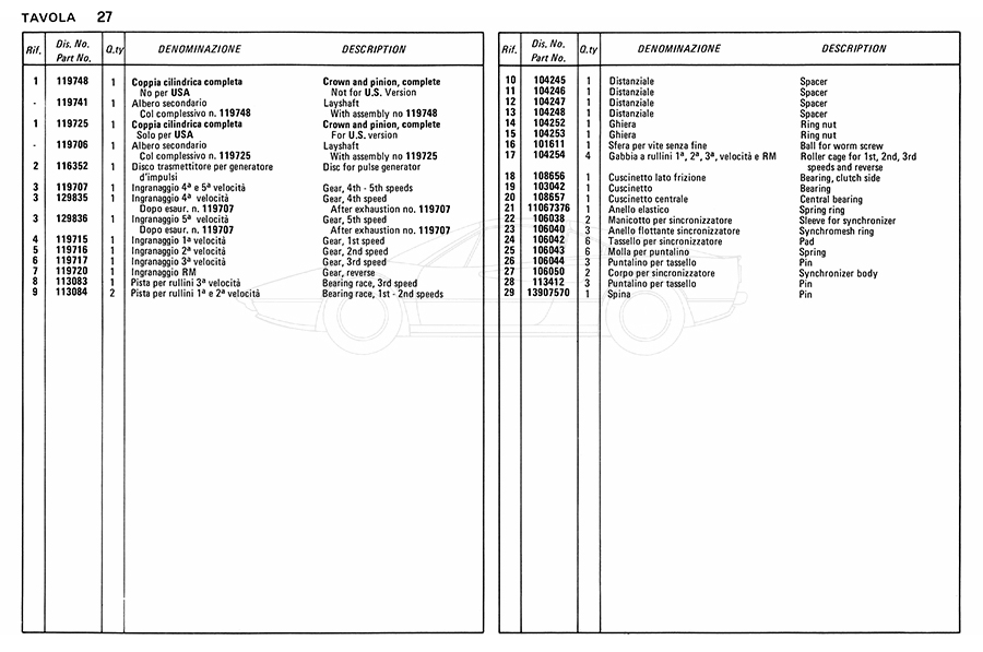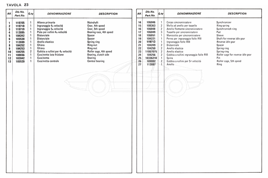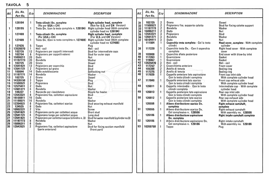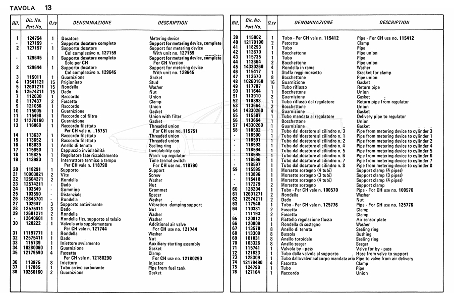 Catalogue des pièces de rechange