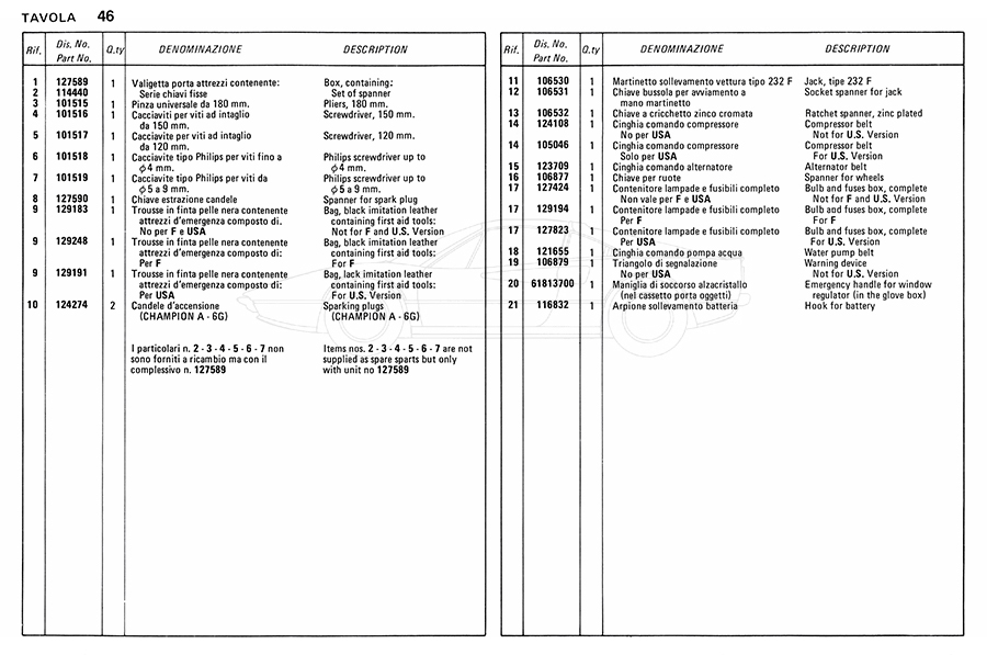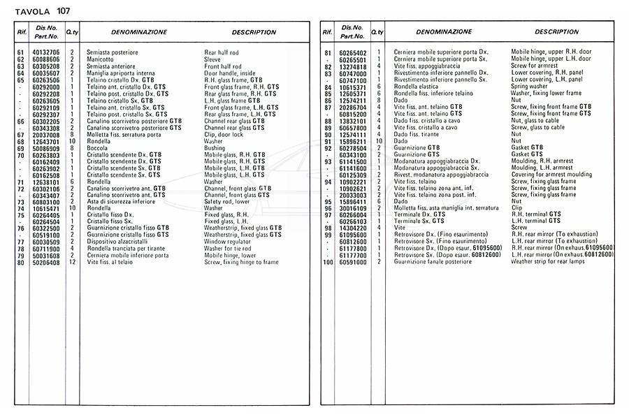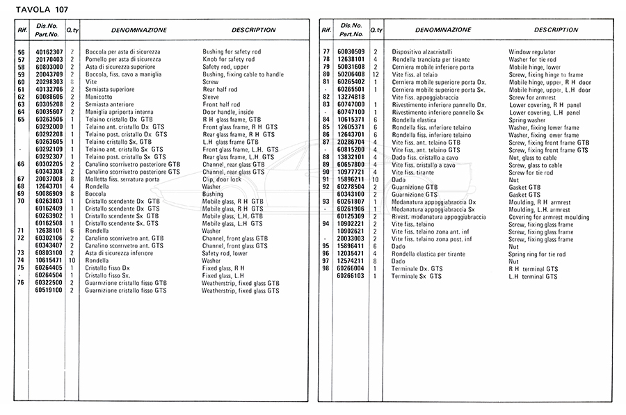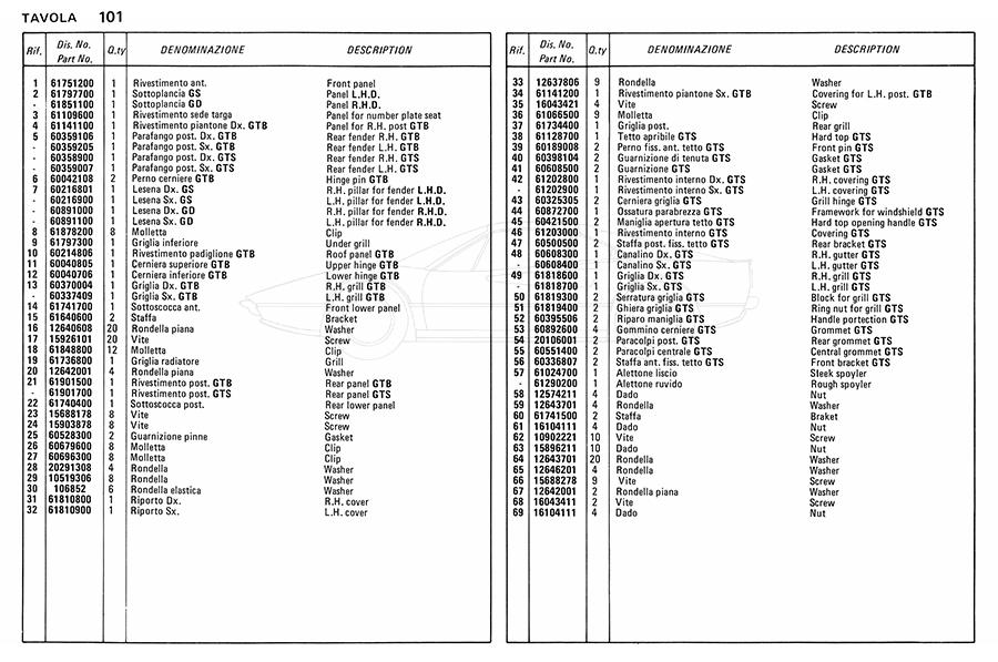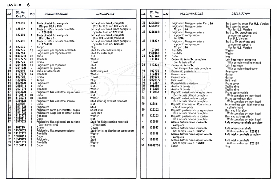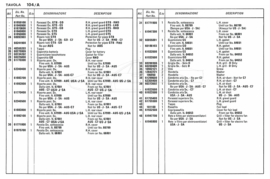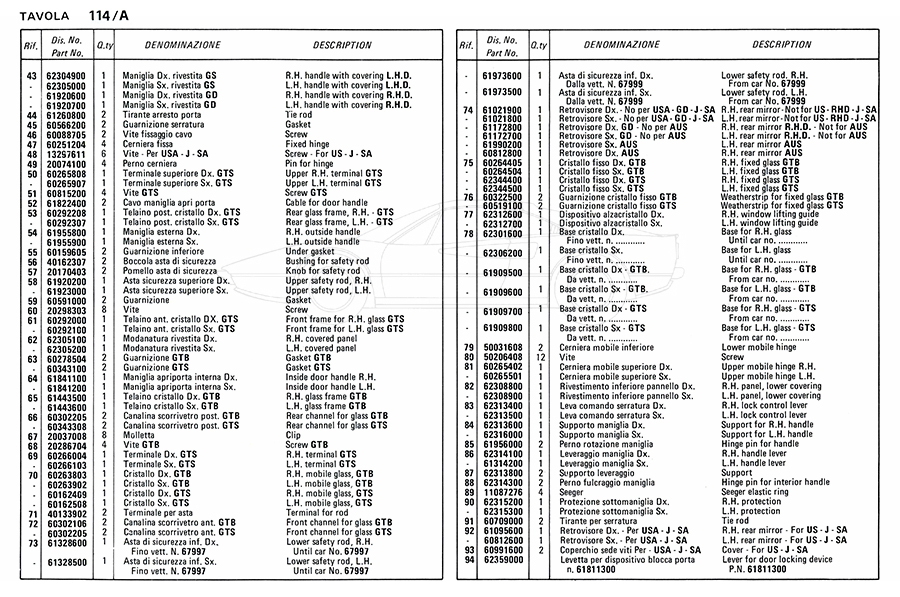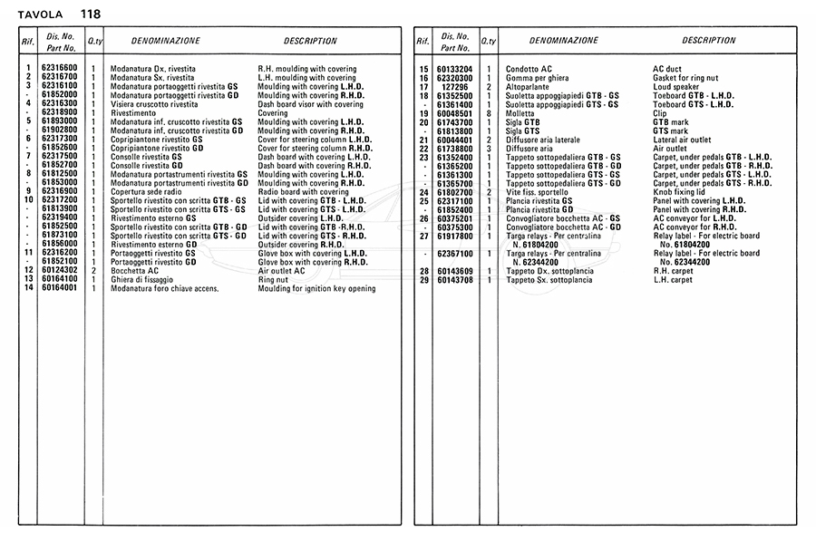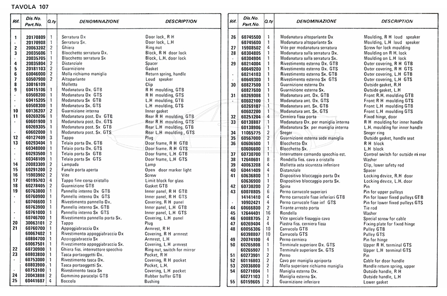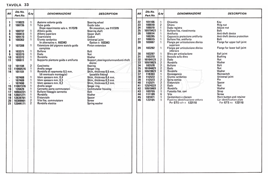 Catalogue des pièces de rechange