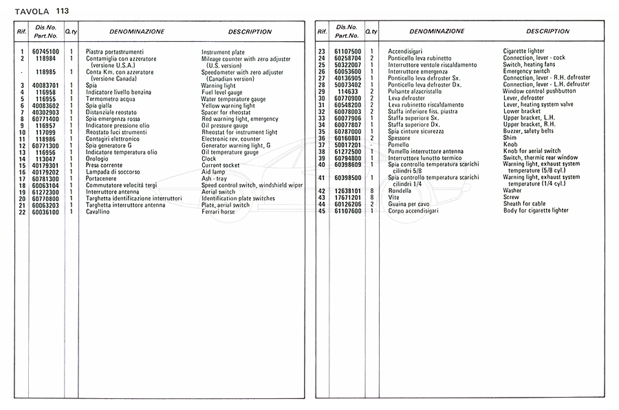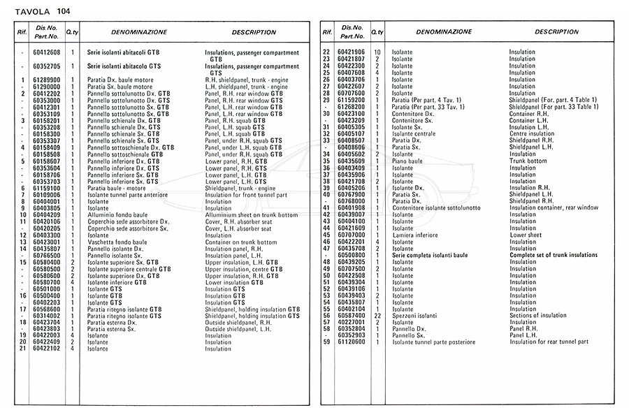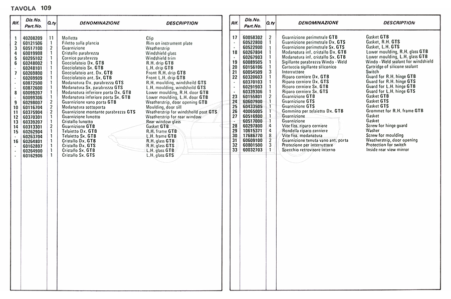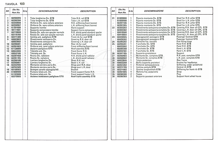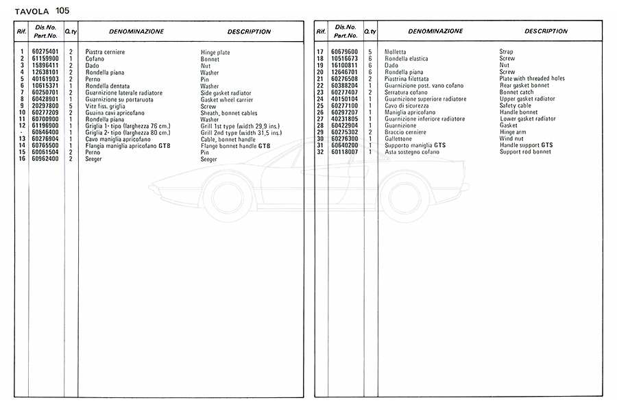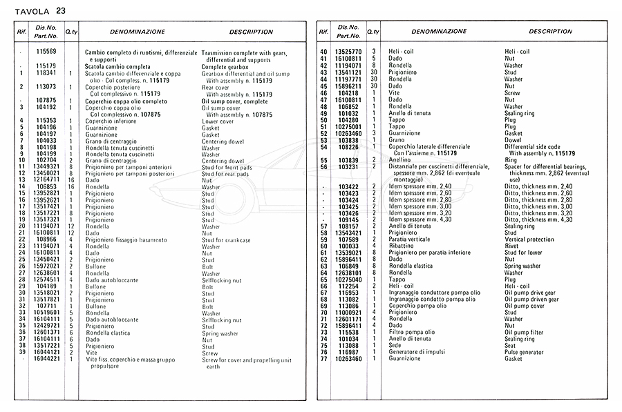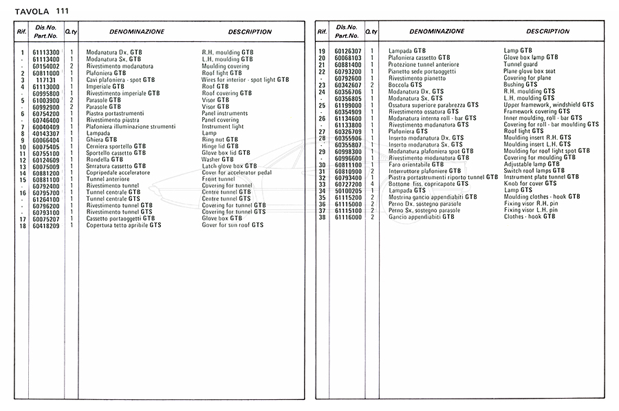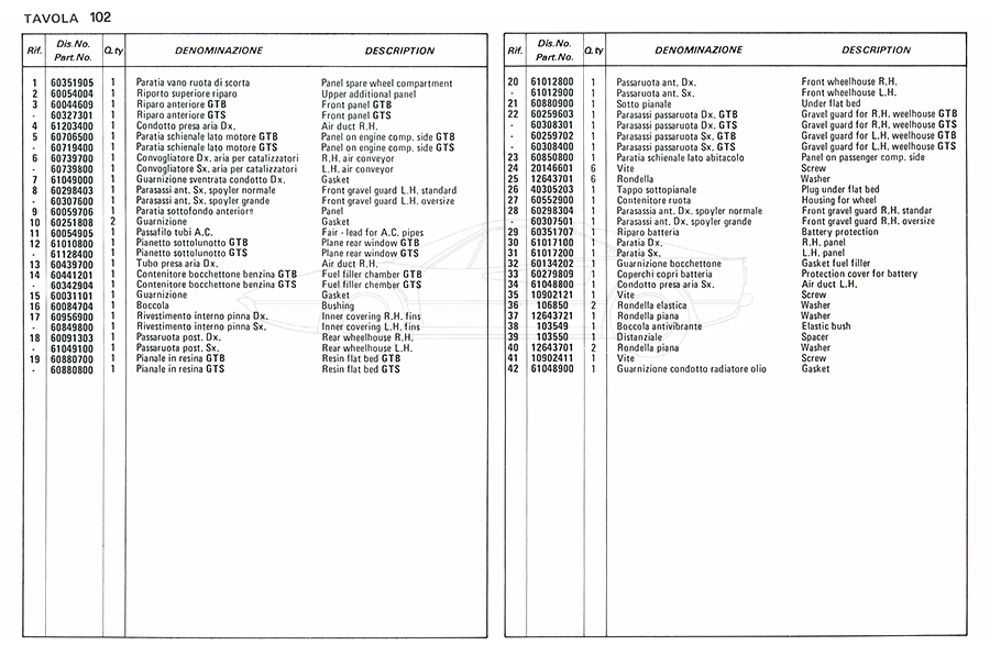 Catalogue des pièces de rechange